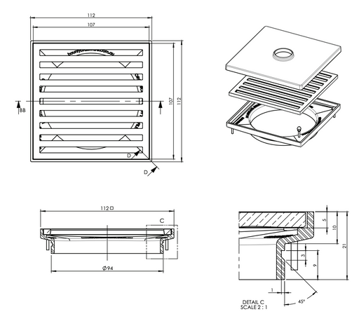 Art Australia Square Floor Waste 100mm - 316 Stainless Steel