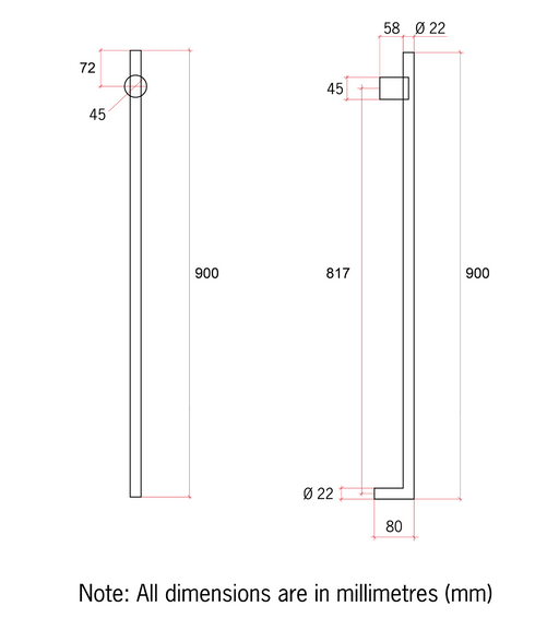 ThermogroupStocked by supplier shipped in 7 to 10 business daysBrushed brass Concealed hard wiring Height : 900mm Top wiring only Single rail Lead length: 1.3M Sold individually lead length 2M Warranty - 7...