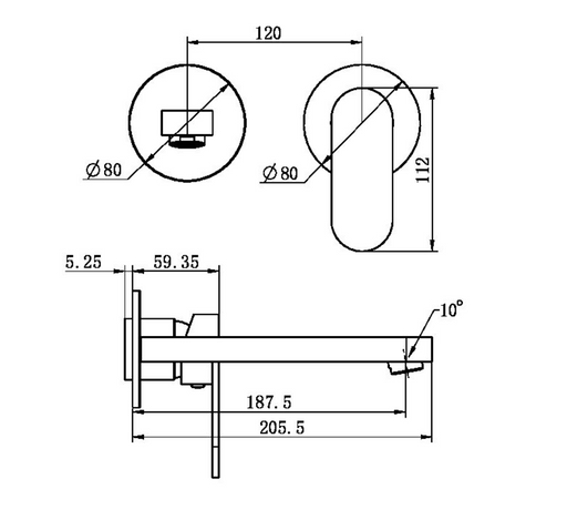 Nero Ecco Wall Basin/Bath Mixer Set SP - Brushed Gold
