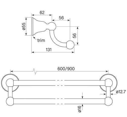 Faucet Strommen Cascade Double Towel Rail 900mm - Chrome