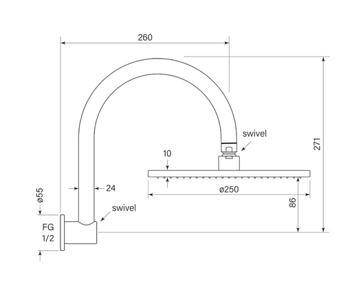 Faucet StrommenStocked by supplier shipped in 7 to 10 business daysWELS 3* 9 lpm Reach 260 mm Swivel arm 250 mm round head WELS registration number S17020 Made to order: 4 weeks for manufacturing 40 Year manufact...