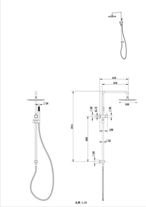 MillenniumLow stockFull length combination shower Single function handpiece PVC smooth hose 250mm Brass rose Water inlet at top fixing Gunmetal PVD finish Constructi...