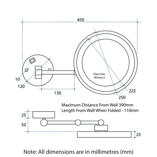 ThermogroupLow stockDouble sided mirror 1 & 3 Times Magnification Brass construction Cool LED lighting Safe for bathrooms Brushed brass frame Mirror - 185mm diame...