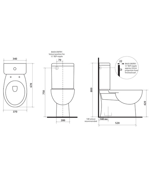 SeimaStocked by supplier shipped in 7 to 10 business daysChios CF close coupled toilet suite Easy Care Height Ceramic cistern and pan, soft-closing seat, S-trap, 140mm set-out, WELS 4 star 4.5/3L flush, ...
