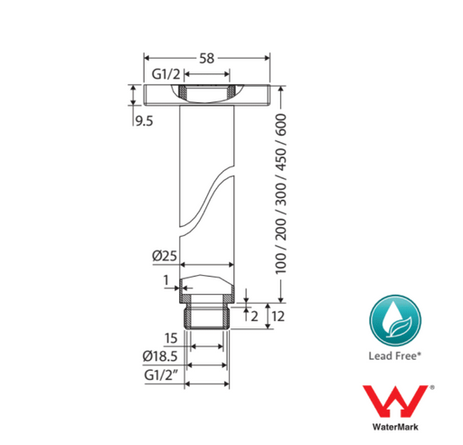 NeroStocked by supplier shipped in 7 to 10 business daysProduct Type: Ceiling Arms Colour: Brushed Gold Material: Brass Also available in 300mm Product SKU:NR503100BG WELS Registration No:N/A