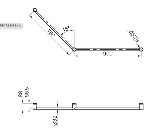Nero Mecca Care 32mm Ambulant Grab Rail 45 Degree 750 x 450mm - Chrome